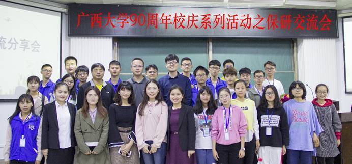 会议最后,同学们与保研代表进行了互动交流,四位代表就同学们提出的问题进行了一一解答并留下了联系方式。此次广西大学90周年校庆系列活动之保研交流会在同学们的掌声中圆满结束,期待明年有更优秀的同学能够加入到保研学子的队伍!